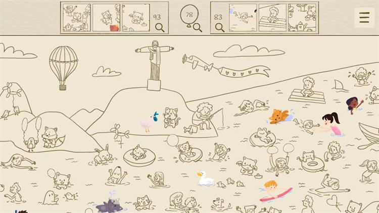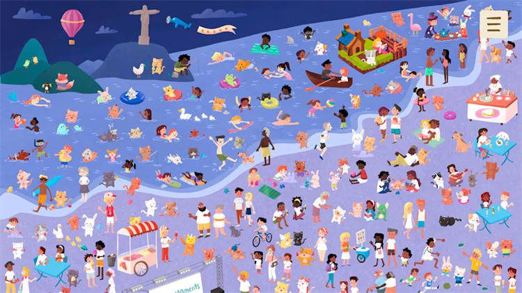 爆破气球乐趣:在寻找角色的同时,在整个海滩上放松地弹爆气球。就像爆开泡泡纸一样放松和满足!